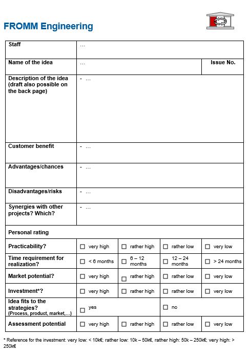 The main goal is the optimization of products and processes in the company. But other sub-goals can also be pursued with the model. This can also mean improved security in operation or effective administration. In addition, the employee suggestion scheme can optimize employee identification with the company and increase general motivation.