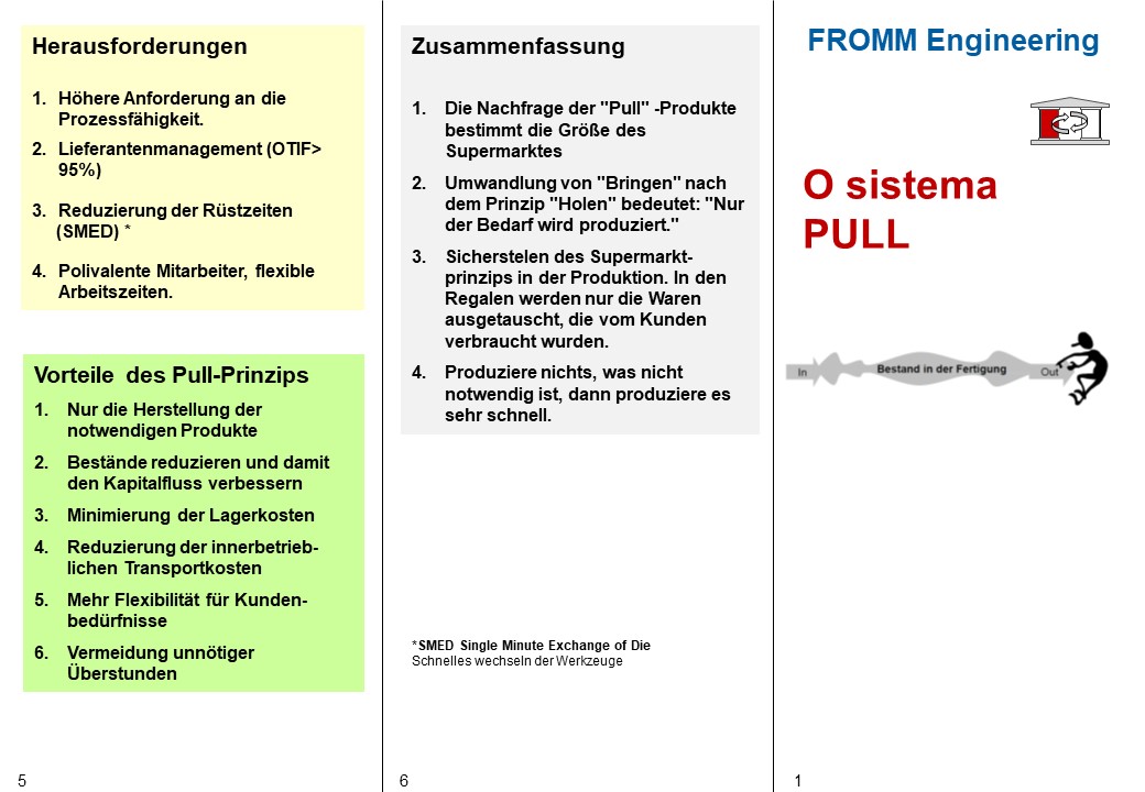 In order to be able to implement the pull principle effectively, the production sequence should be smoothed (Heijunka). The individual stages of production must be synchronized so that an ordered quantity can be delivered precisely.