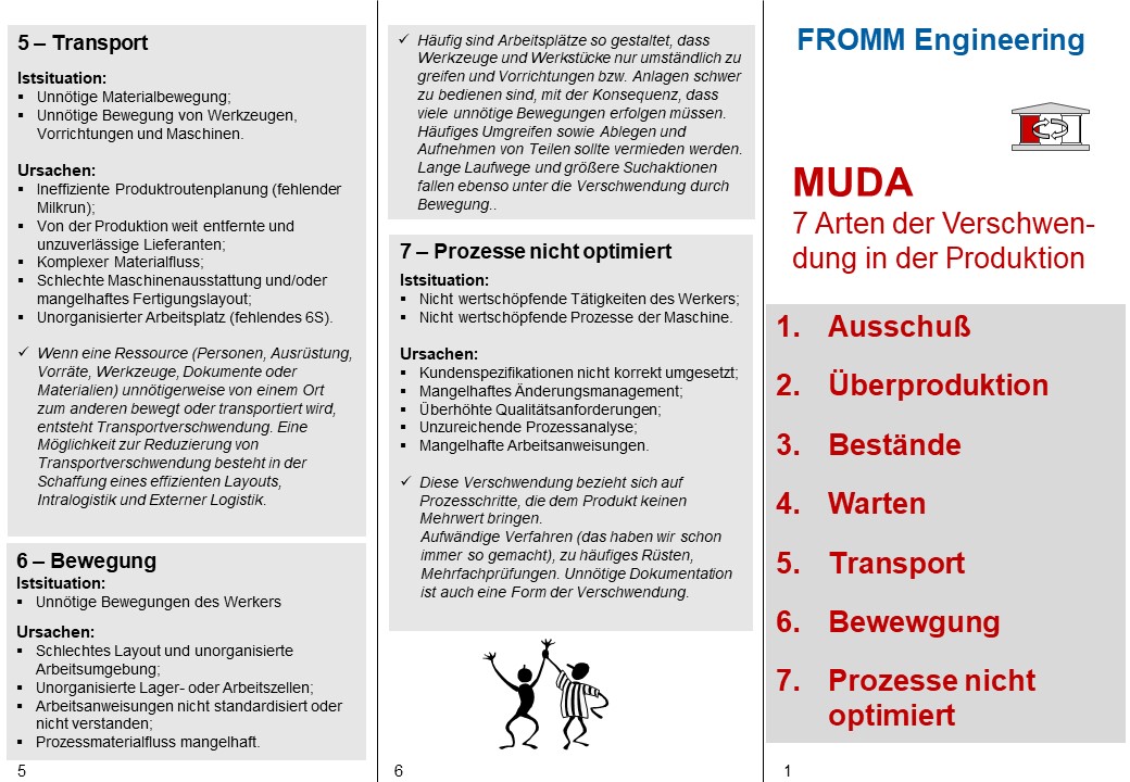 7 types of waste have to be discovered and eliminated in daily operation. Here you will learn about the 7 types of waste. For each of the 7 types of waste, you will receive information on the corresponding lean tools to reduce waste.
