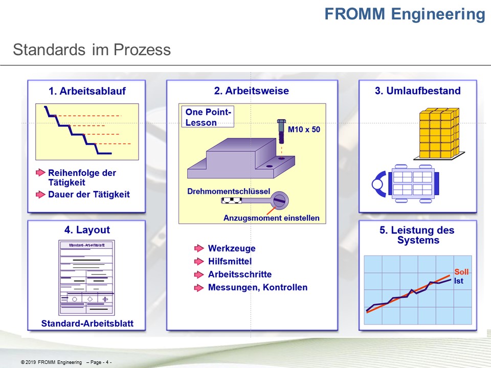 In a well-organized factory, there is a clear regulation of which material, in what quantity, on what area and how and with what is worked at the various workplaces. These game rules are documented and only one suggestion for improvement leads to a change of the game rules. Because only those who know where they stand can determine whether they are improving.